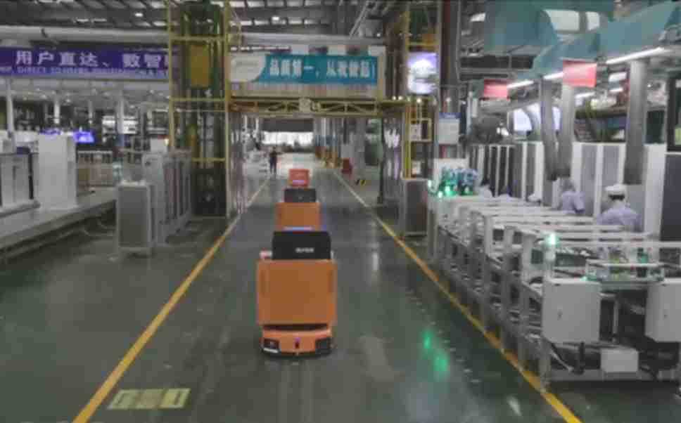 为车载冰箱物流配送打造的智能解决方案,,包含产中物流通过潜伏举升AMR搬运至线边,,产后成品物流智能仓储,,流程包含产中物流智能齐套入库,,,,线边安灯叫料AMR智能配送至线边,,成品入库、、出库,,,通过无人堆高车机器人,,,智能仓储管理替代人工作业管理,,,,实现更高存储、、、、更高效率、、、、更具柔性化的解决方案。。。。