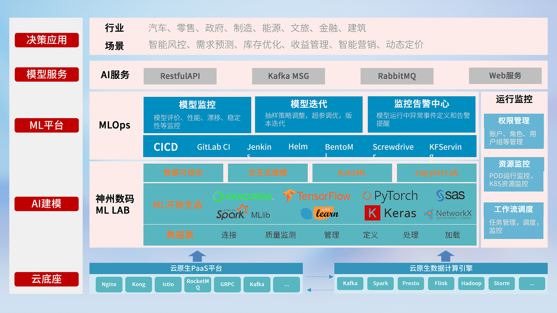 数据+模型双引擎驱动,,,,面向智能服务场景,,快速灵活利用AI技术,,,支持业务决策,,,助力企业智能化转型破局。。